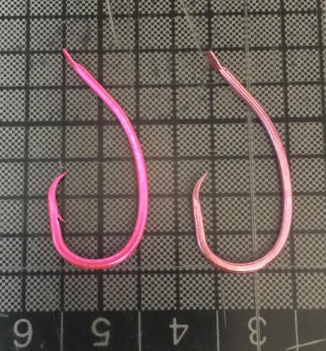 細軸のケイムラピンク、ケイムラバイオレッドカラーのホタ針です。