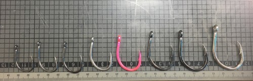 6/0〜8/0アジなどを餌に、ブリ、ヒラメ、大鯛などの端物狙いや小型ヤリイカ泳がせの孫針にも!
