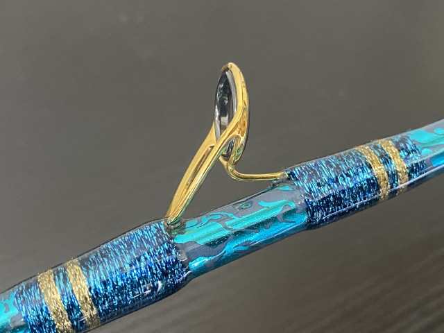 タイトなレンジにコマセの煙幕を作りその中にウィリーや付餌(オキアミ)の付いた短仕掛けを同調させたり、誘いレスポンスを向上させるなど優れた操作性を引き出す為にティップヘビーに、またシマアジ独特の締込み、タタキの引きを、カバーする為、ベリーの中腹部からバットフロントソストグリップまで粘りながらも残る調子で口の弱く強烈なシマアジの引きを吸収しバラシが軽減します。