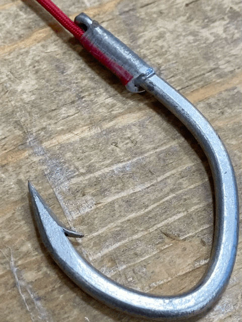 針はハタ類の硬い口も貫く貫通力と鋼と手曲げ手打ちのクエ針40号を使用しました。