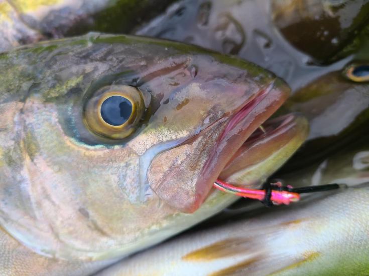 また針も丸軸マギール11/0ケイムラピンクで集魚力を高め