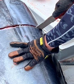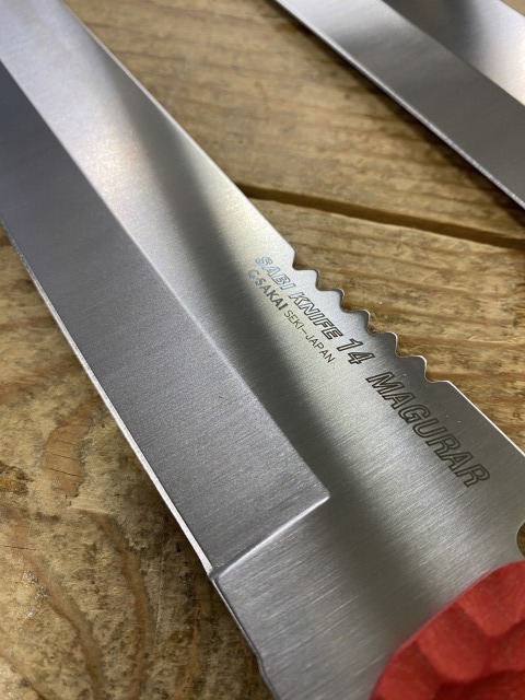 Gサカイ、サビナイフ14MARGARブルー船上の大型魚の解体に!