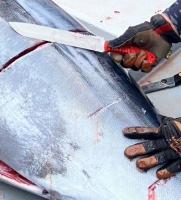Gサカイ、サビナイフ14MARGARレッド船上の大型魚の解体に!