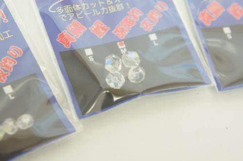 ダイヤカットを施したクリスタルビーズの中に夜光塗料を埋め込みました。表面はオーロラ加工仕上げです。真鯛に効果絶大です。